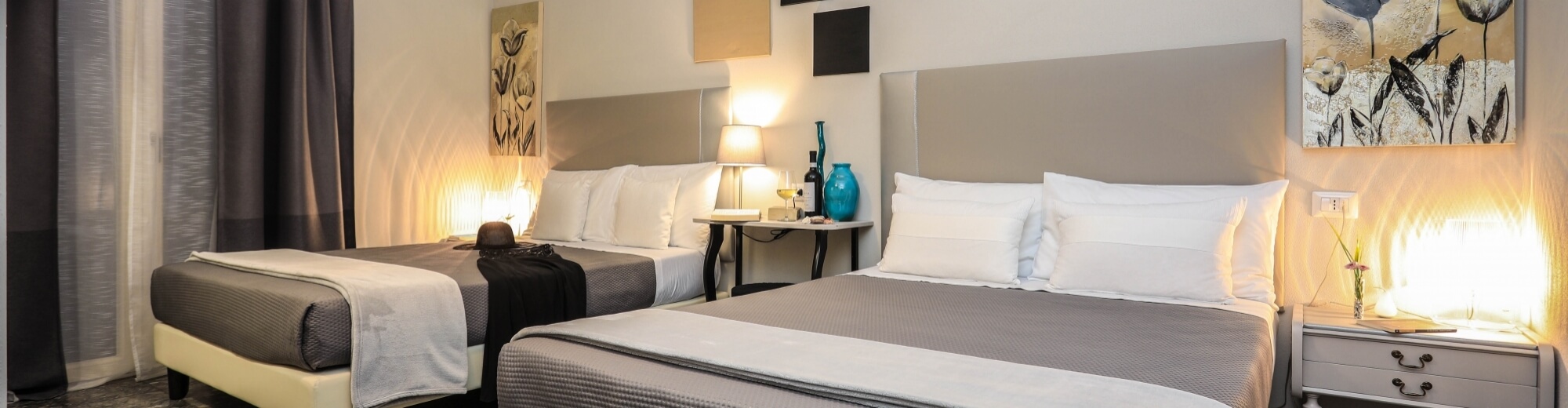 This deluxe room with balcony offers 2 queen size beds and a renovated private bathroom with shower, for a stay in Alghero for up to 4 people.